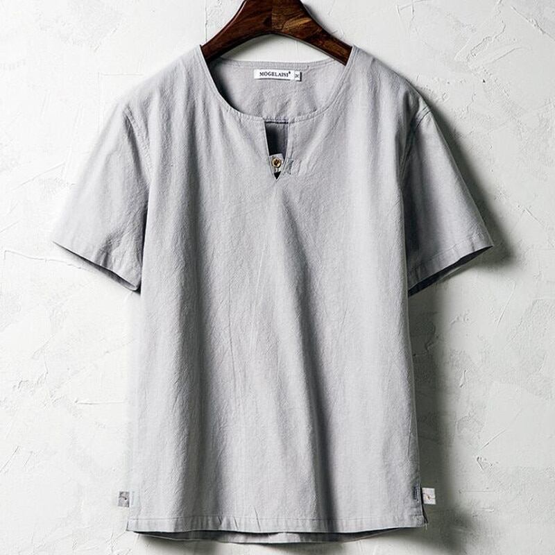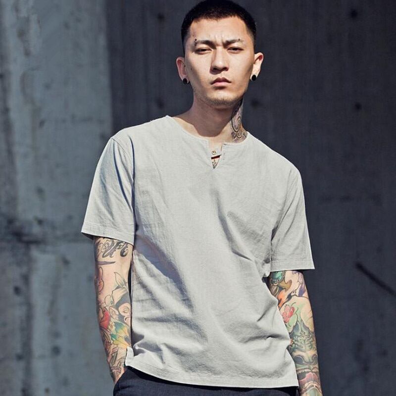 春と夏の新しい綿とリネンtシャツ男性カジュアルラウンドネック半袖リネンtシャツメンズ中国風tシャツ