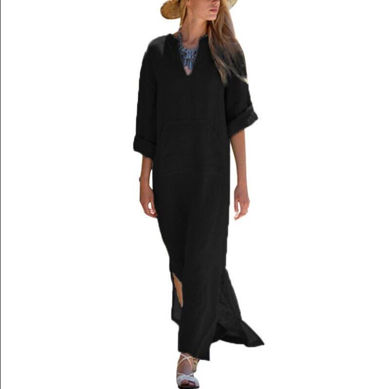 性:女性/袖様式:規則的/季節:夏/シルエット:まっすぐに/材料:麻布 綿/様式:ボヘミア/ネックライン:V首/ドレスの長さ:足首の長さ/ウエストライン:自然/モデル番号:women dress/袖丈(センチ):十分に/装飾:どれも/パータンタイプ:固体/銘柄:COCKCON/