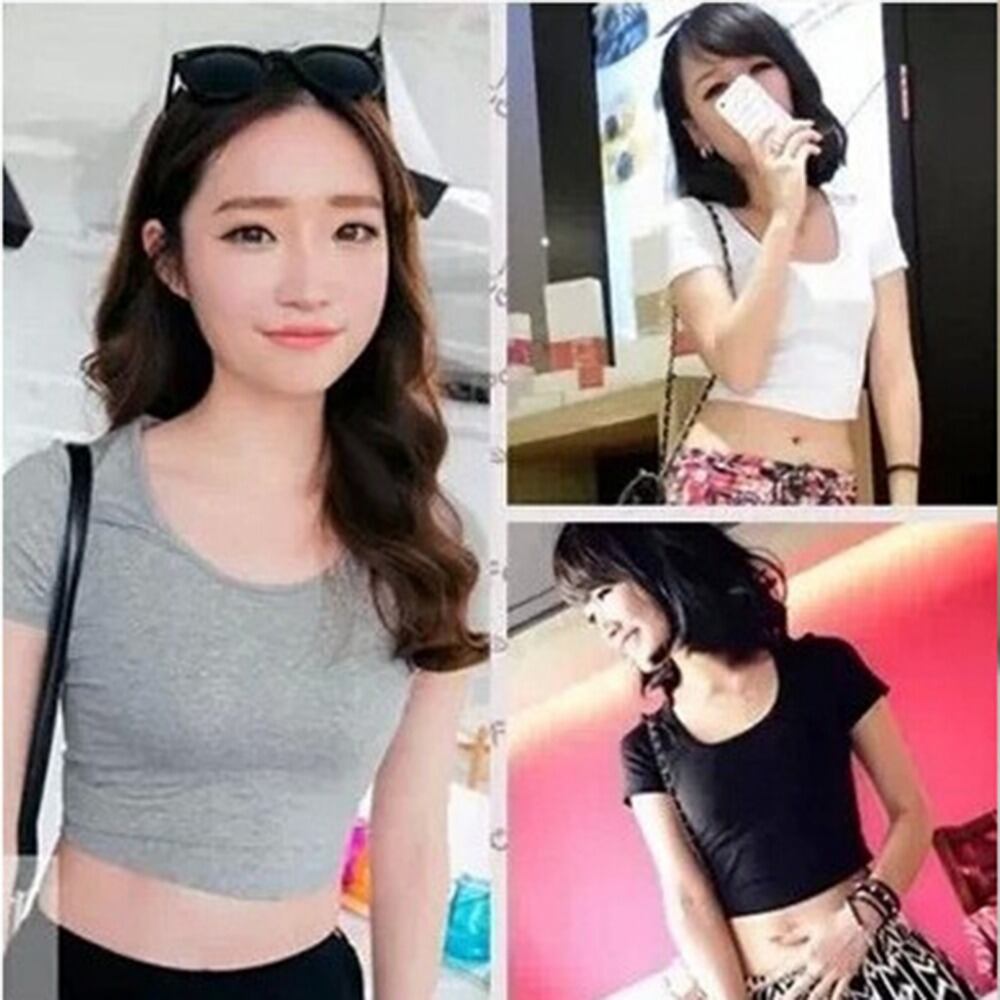 女性の最高の販売 U ネックセクシーなクロップトップ女性半袖 Tシャツ Tシャツショート Tシャツ基本ストレッチ Tシャツ