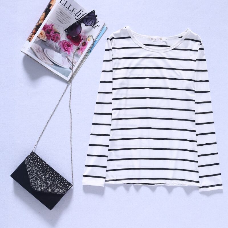 2017ストライプシャツ長袖黒と白のストライプtシャツ女性緩い学生底tシャツ