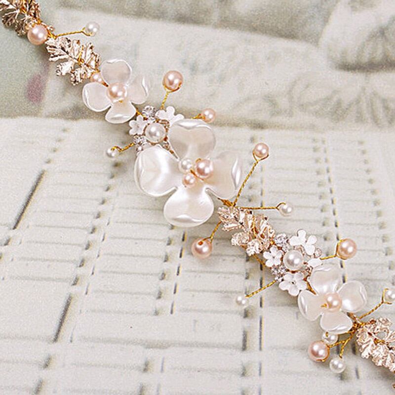 ブライダルフラワーフェイクパールラインストーンウェディングカチューシャヘアバンドクリップティアラ2017