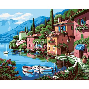 絵画数字で壁の装飾diy絵油絵ホームデコレーション50*65村風景大サイズdy81