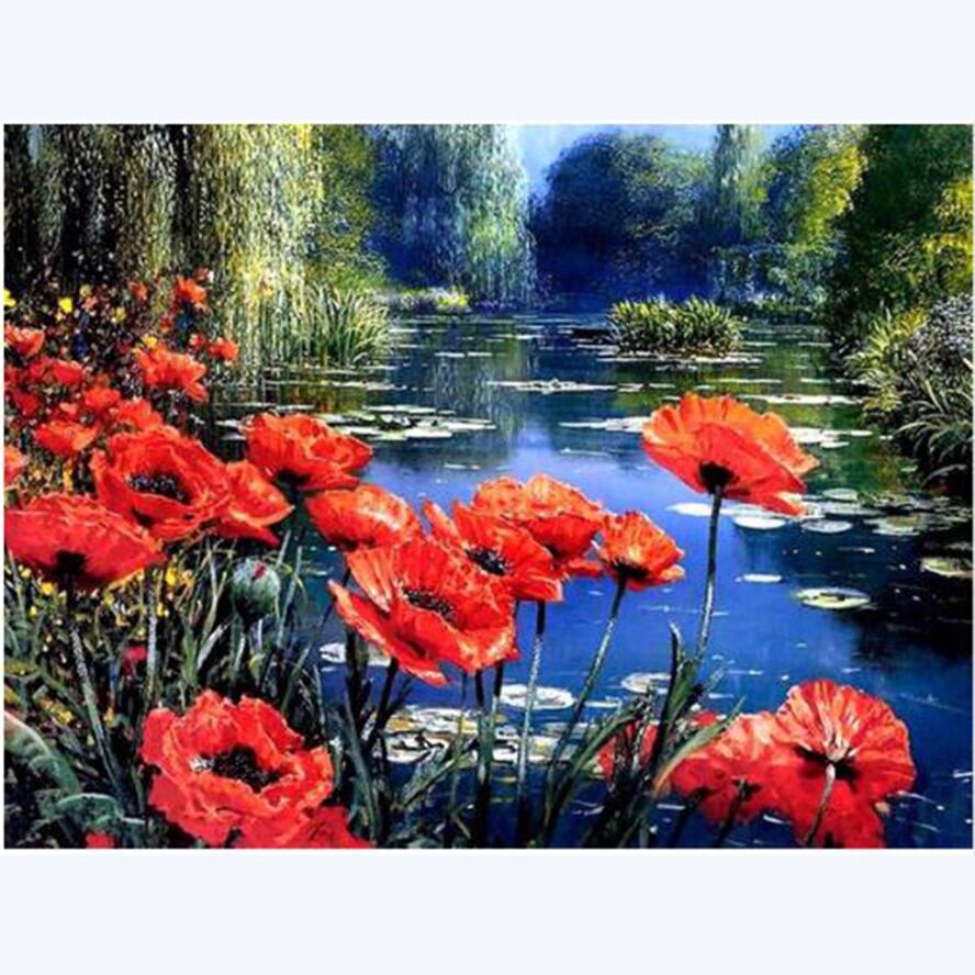 Diyのダイヤモンド塗装クロスステッチ野生ポピーラインストーンクリスタル針仕事ダイヤモンド刺繍フルダイヤモンド装飾AS775