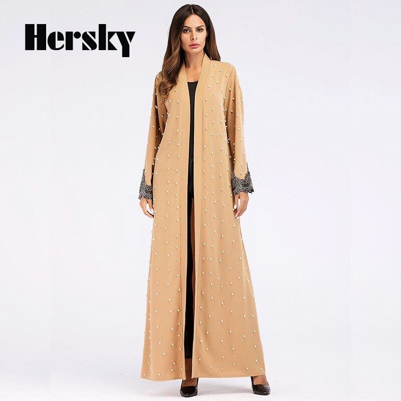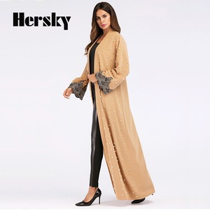 新しい中東ドバイオープンアバヤカフタントルコイスラム教徒女性バブルビーズドレストルコ女性カーキカーディガン長袖ドレス