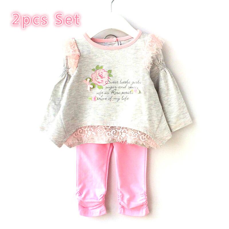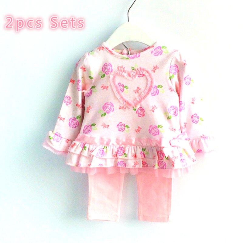 2016新しいベビー服花柄愛ハート外服スーツ長袖プリンセスdress +レギンス子供服9-24メートル