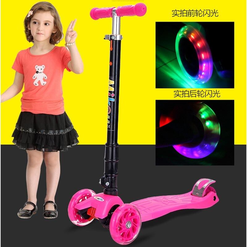 子供4 puホイール調整可能な高さミニキックスクーターでledライトアップpu車輪