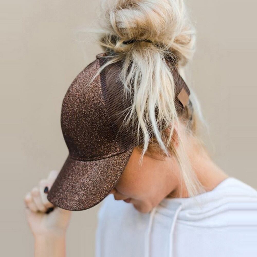 ホット新しいグリッターポニーテール野球キャップ夏お父さん帽子用女性2018スナップバックヒップホップキャップメッシースパンコールメッシュトラック運転手の帽子