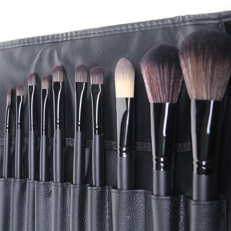 プロフェッショナル18ピースナチュラルヤギ毛黒&ウッドハンドル化粧用ブラシセットキットで黒バッグ