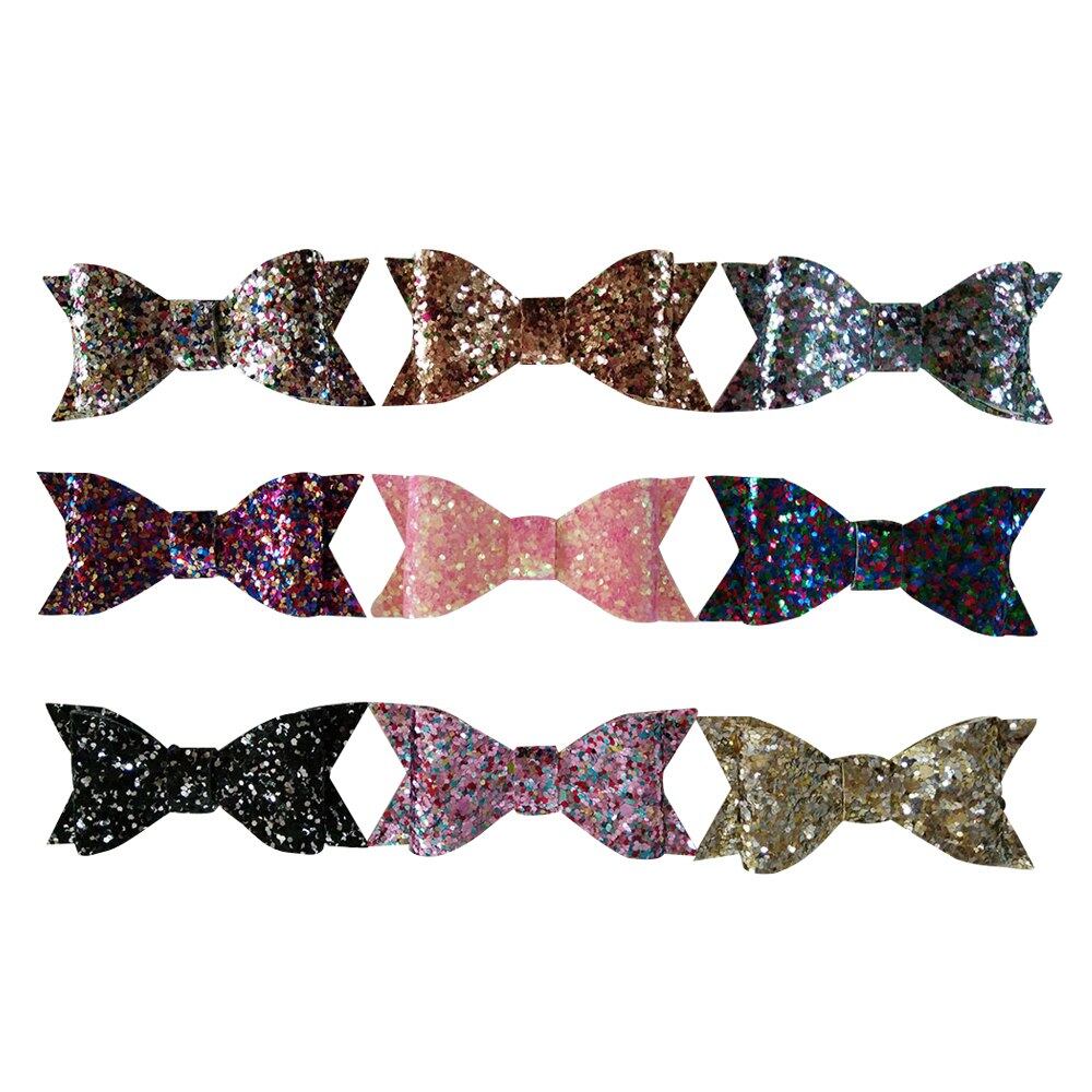 10色2.8インチグリッターレザー髪弓クリップ子供弓ヘアクリップ女の子の弓ネクタイ用ヘアアクセサリー