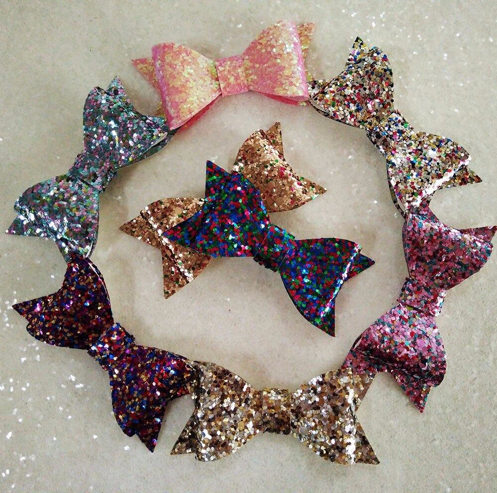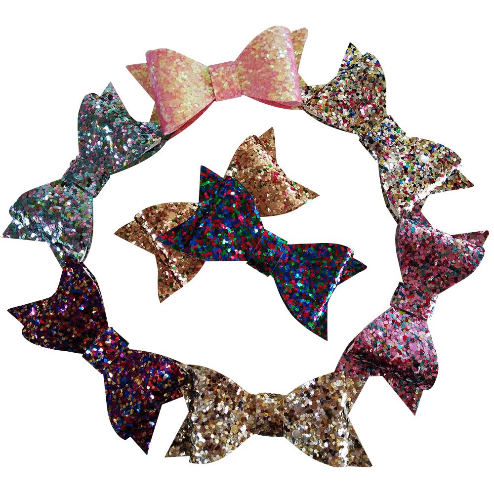 20ピース/ロット2.8インチヘア弓クリップが付いている、髪の弓クリップ、グリッター弓ヘアクリップ10色送料無料