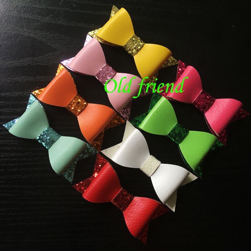 30ピース/ロット、2.8「新加入革グリッターwithout弓クリップ、ヘア弓14色ヘアアクセサリー