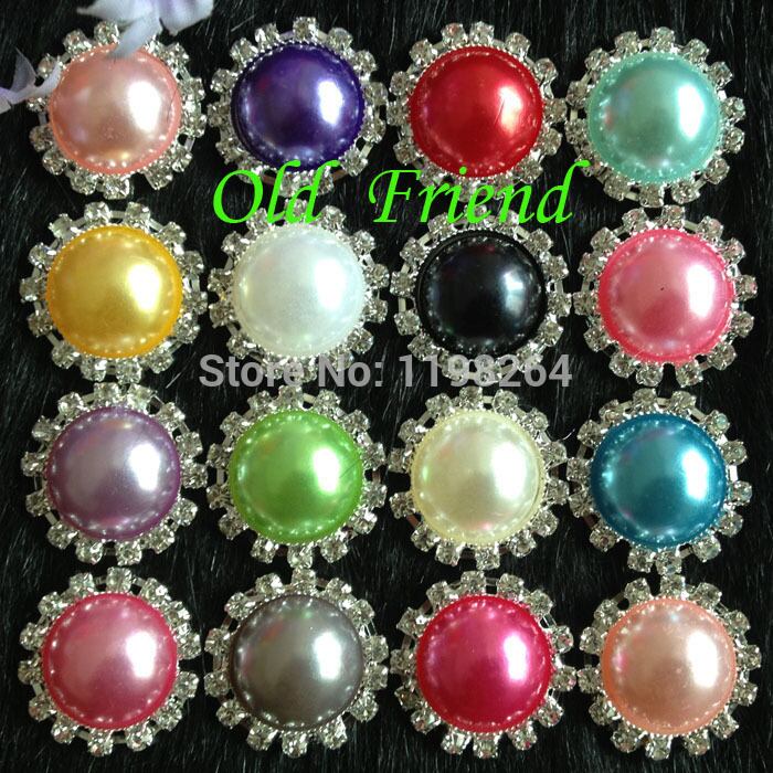 22ミリメートルラインストーンメタルボタンパールボタン用髪花&服60ピース/ロット14色、ヘアアクセサリー、送料無料