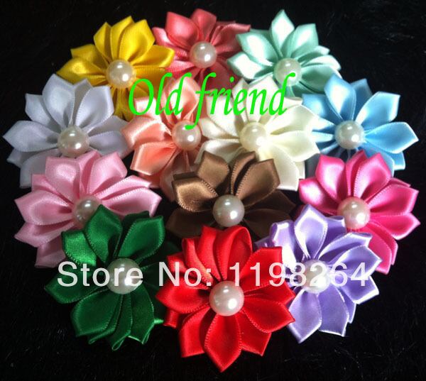 2 ''サテンリボン多層パール、diyの花のため子供ヘッドバンド&ヘアクリップ、60ピース/ロット送料無料