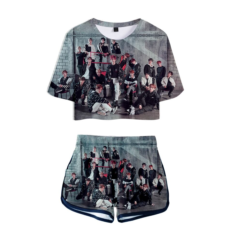 3D NCT 男の子グループ新夏セクシーなセット女性の夏露出へそトップス Tシャツ女性の Kpop ヒップホップショーツアクティブトラックスーツ