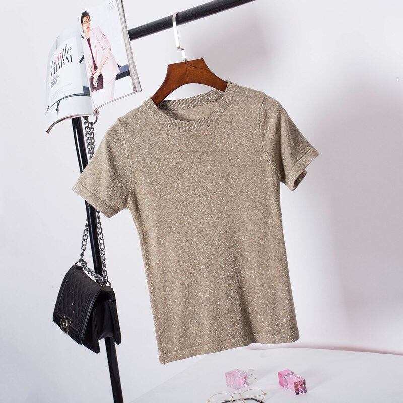 2018 女性の夏のセーターやプルオーバー O ネック半袖アイスシルクニットストリート Pulover Feminino