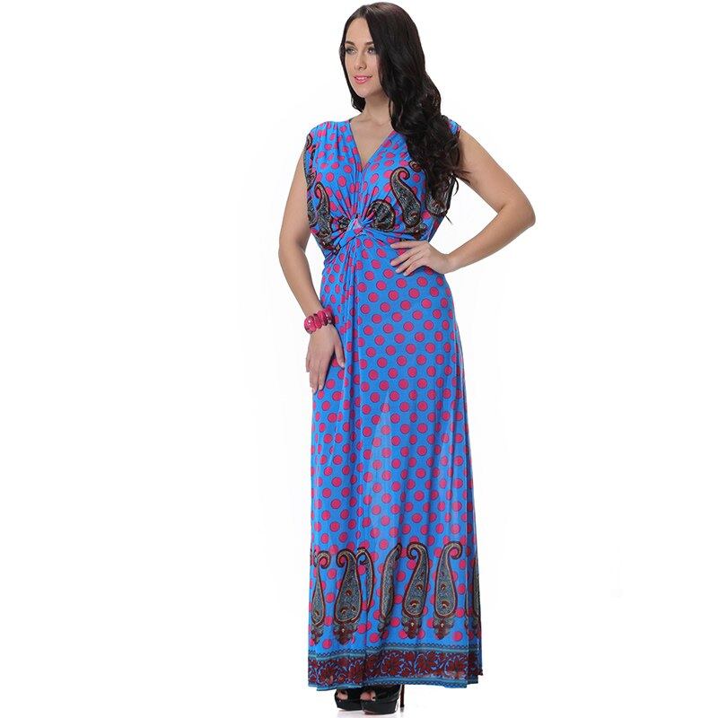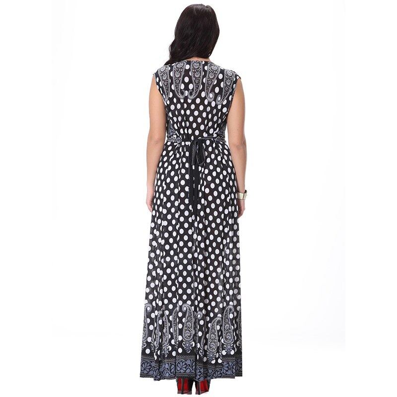 2018カジュアル女性サマードレスセクシーなvネックノースリーブポルカドットドレスロングマキシビーチクラブパーティードレスプラスサイズ7xl vestidos