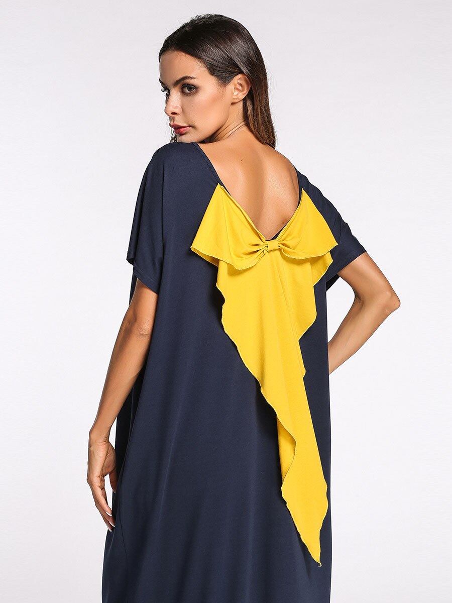 ローブフェムセクシー ete 女性サマードレス非対称セクシーなオープンバックロングドレス紺パッチワークプラスサイズ 4XL Sukienki damskie