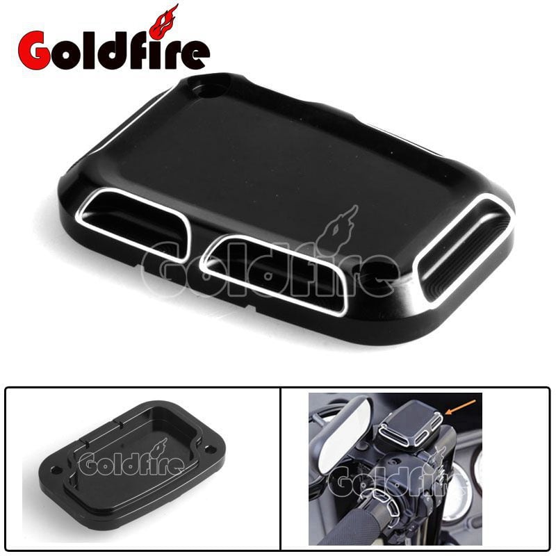 左サイドフロントブレーキリザーバーシリンダーカバーキャップ黒とキャストクロームアルミcncハーレーロードキング滑空08-15