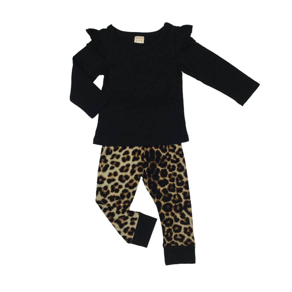 女の子の夏の服ベビーロンパース黒 tシャツ + ヒョウパンツ幼児新生児のファッション子供服