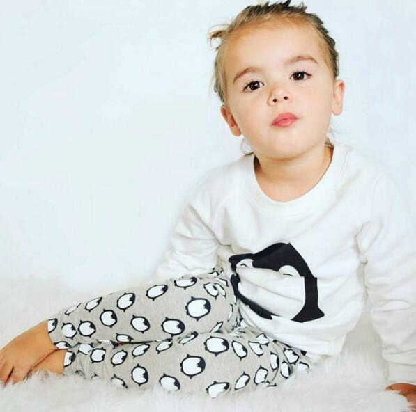 赤ちゃん男の子の服セット2017秋2ピーススーツ赤ちゃん女の子服綿新生児tシャツ+パンツペンギンプリント赤ちゃん服セット