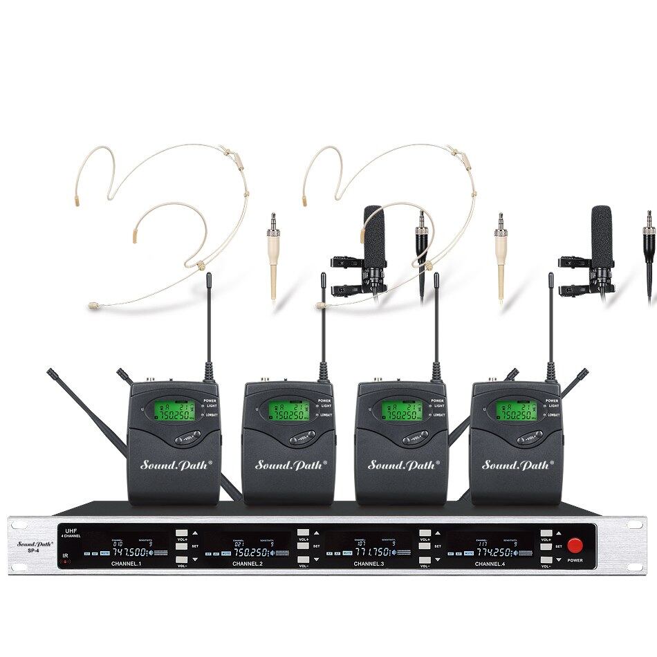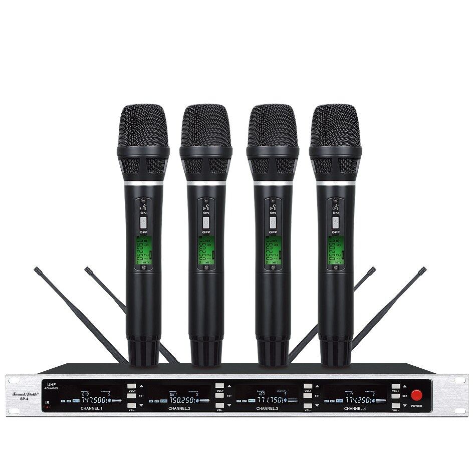Soundpathプロフェッショナルuhfワイヤレスマイクマイクシステム4チャンネルuhfダイナミックプロフェッショナル真の多様性マイク