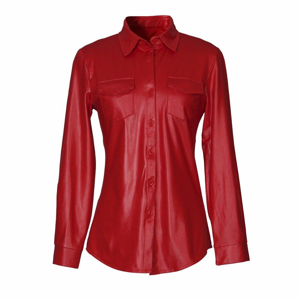 項目タイプ:トップ/トップ・タイプ:ティー/性:女性/パータンタイプ:固体/装飾:ポケット/銘柄:JRRY/袖丈(センチ):十分に/カラー:マンダリンつば/モデル番号:G086/材料:ポリエステル スパンデックス/生地のタイプ:ブロードクロース/袖様式:規則的/様式:偶然/衣類の長さ:規則的/Size :S M L XL/Color:Black Red/Weight:0.32KG/Style: Long Sleeve Buttons Pockets PU Women Tops/