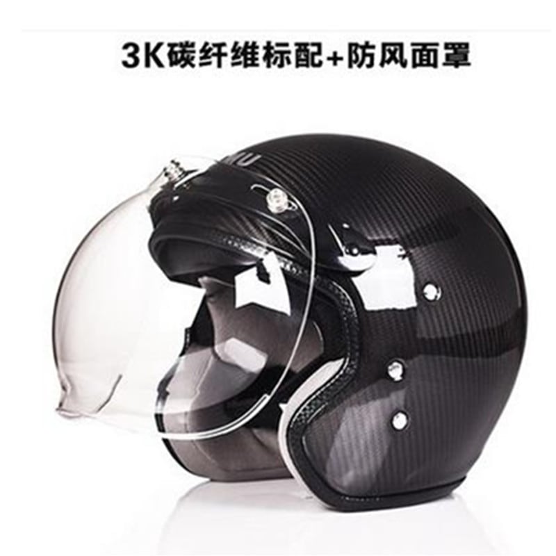 送料無料、あむ黒炭素繊維オープンフェイス3/4オートバイモトクロスヘルメットcasco、ジェットヴィンテージレトロなヘルメット、インナーバイザー、ece