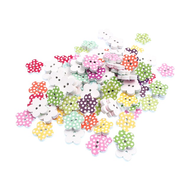 パックの54グラム約140ピースボタン混合色美しい花スタイル繊細な木材diyミシンとを作り上げる