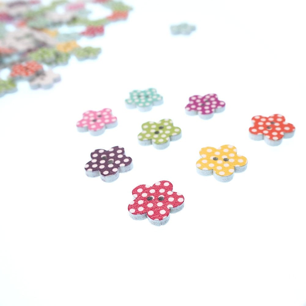 Raylinedoパックの100ピースマルチカラー梅の花型2穴木材ドットボタンパッケージ用縫製スクラップブッキング