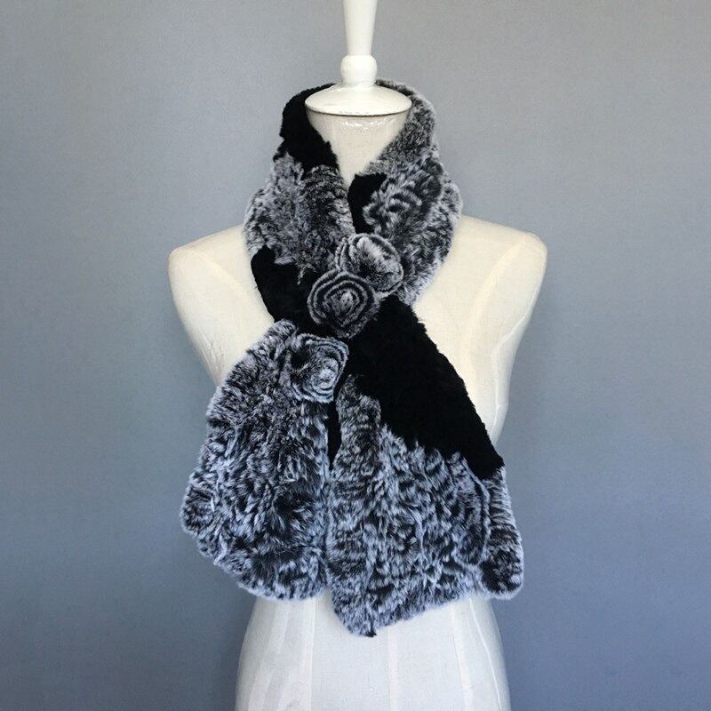 秋冬女性の本物のニットレックスウサギの毛皮ネックリング女性暖かいスカーフ手作りネックウォーマー VF5030