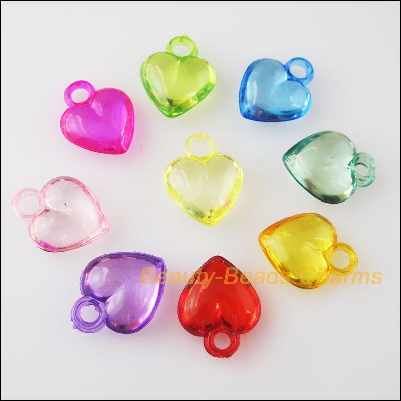 35 ピース混合プラスチックアクリルスムースハートチャームペンダント 13.5 × 17 ミリメートル
