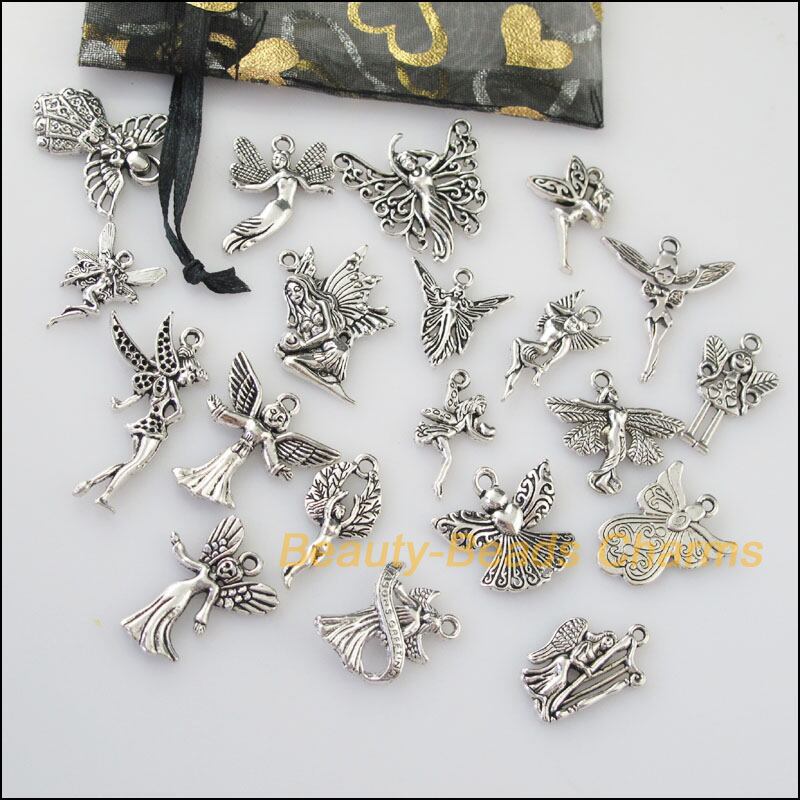 20ピースアンティークシルバートーンdiy/ラブリー天使混合チャームペンダント