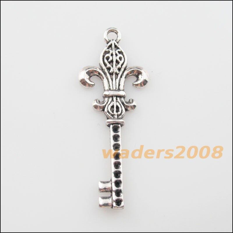 4 ピースチベットシルバートーン "フルール · ド · lis" キーチャームペンダント 18x48 ミリメートル