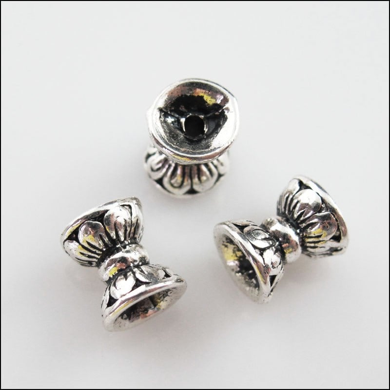 8 ピースチベットシルバートーンフラワースペーサービーズキャップチャーム 8 × 9.5 ミリメートル