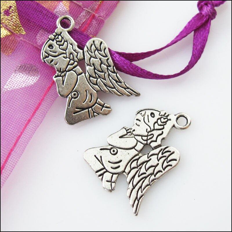 6 ピースアンティークシルバートーン祈る天使の羽ガールチャームペンダント 17 × 23.5 ミリメートル