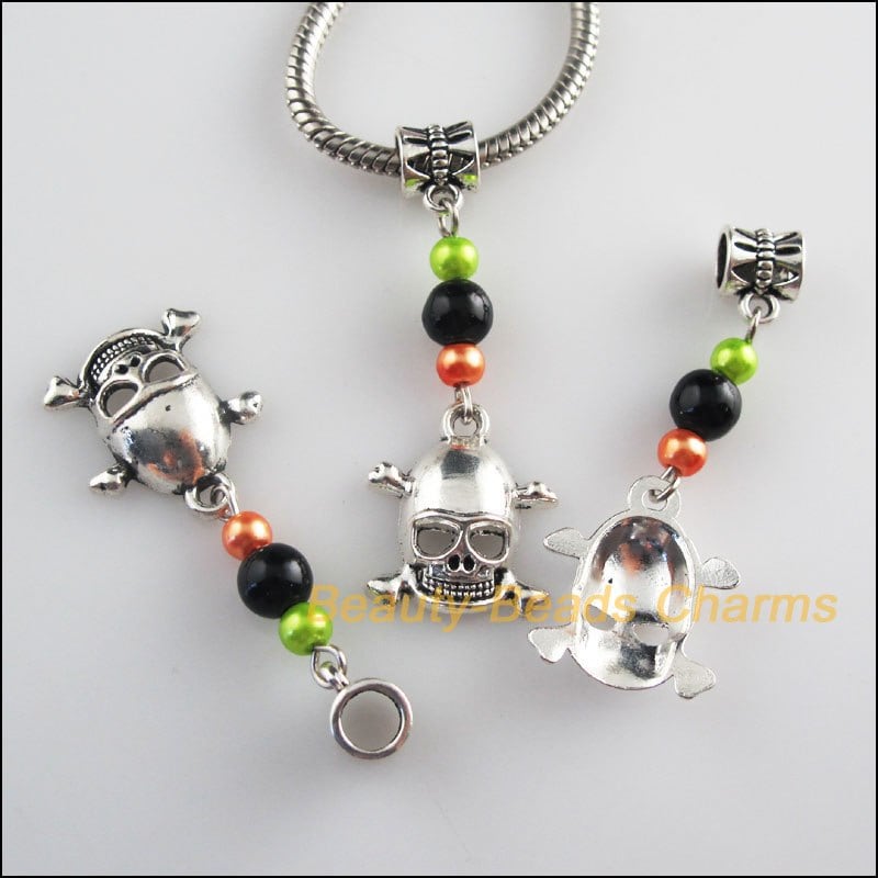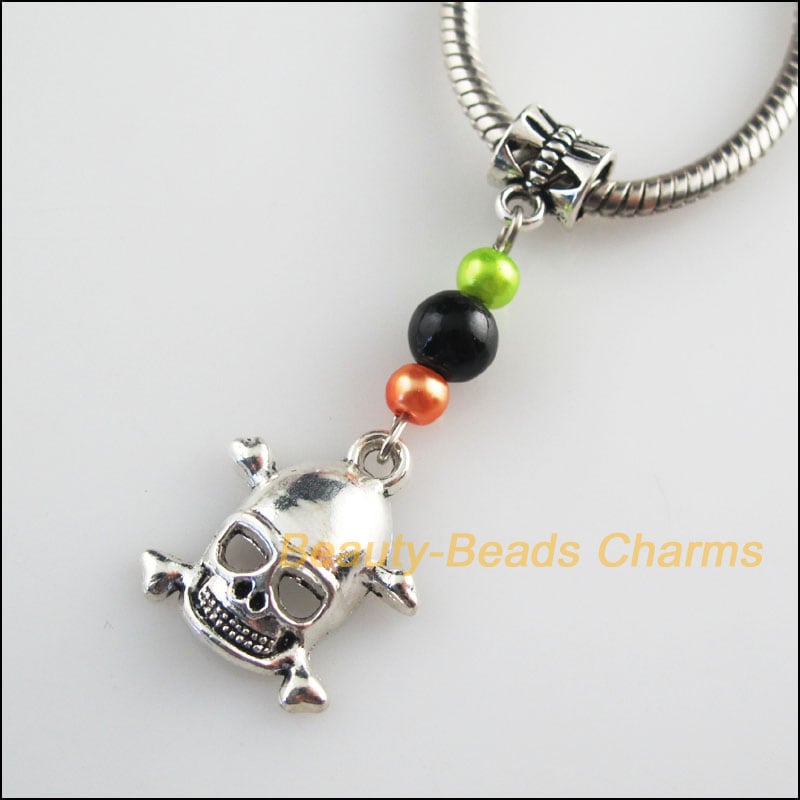 4 新しいスカルチャームチベットシルバートーンガラスビーズフィットブレスレット 17 × 46 ミリメートル