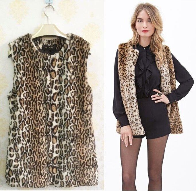 ホット販売秋 & 冬の人気ファッション女性ヒョウ印刷フェイクファーベスト Coa 女性の毛皮のコート