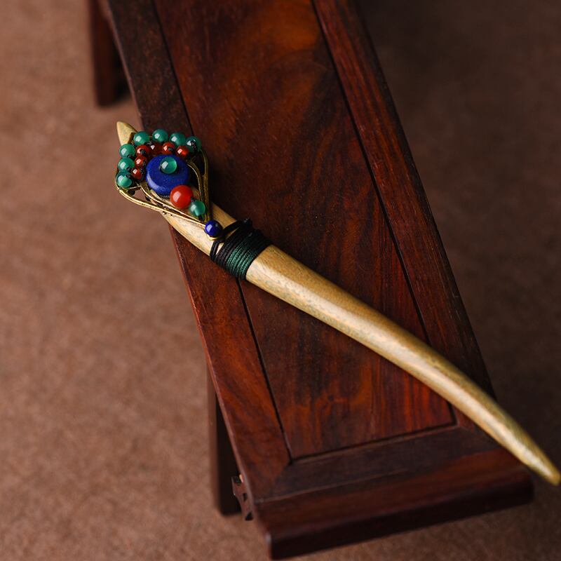 MYWINY ファッション自然白檀ヴィンテージ hairjewelry 、カラーエスニックヘアピン、女性の古典的な髪の宝石、クラシックバレッタ