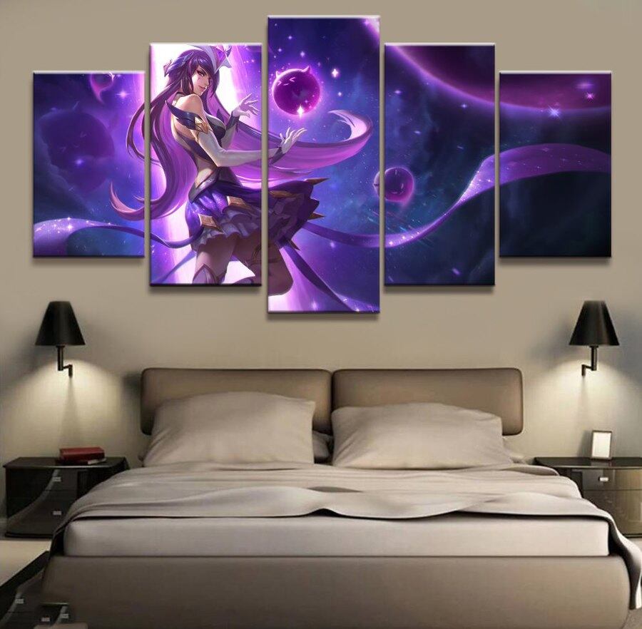 5 パネル Lol リーグ伝説の Syndra ゲームキャンバスプリント絵画リビングルームの壁アートの装飾の Hd 画像作品ポスター