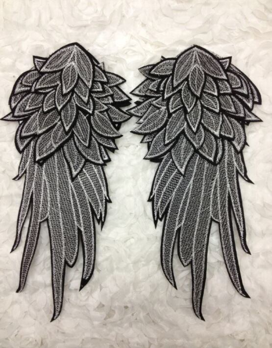 1 ペア天使の羽ホワイト ブラック シルバー刺繍レース パッチ ファッションショー モデリング diy服アクセサリー レース生地