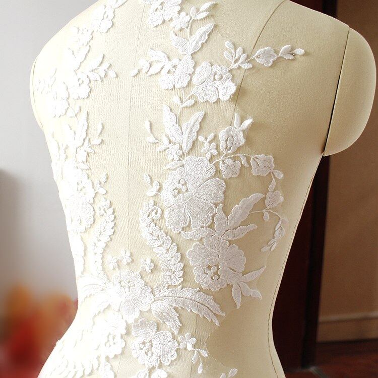 1ピース綿刺繍フラワーレースパッチアップリケ花嫁のウェディングドレスdiy服レース生地素材ホワイト