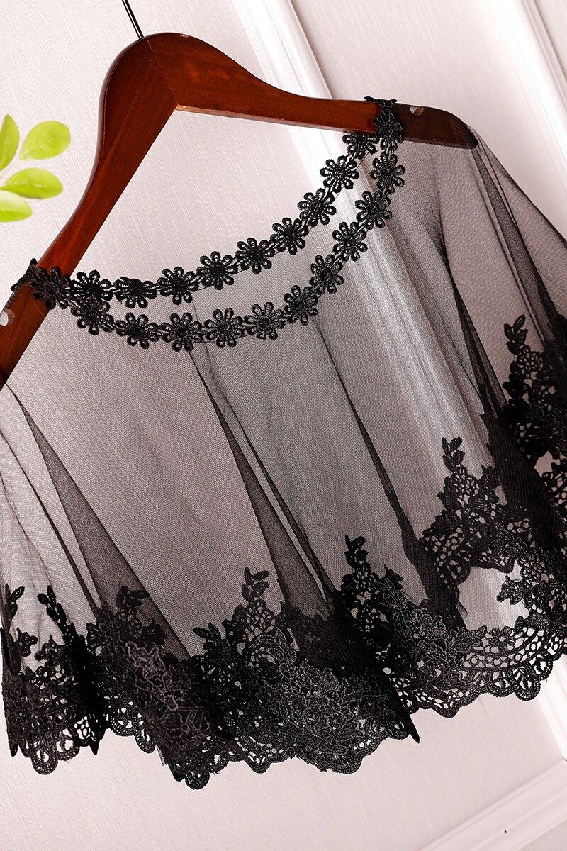 レースの襟日焼けマントネック半袖ショール薄ショートコートジャケットストラップレス小型ショールベスト夏ドレスのレースの生地黒