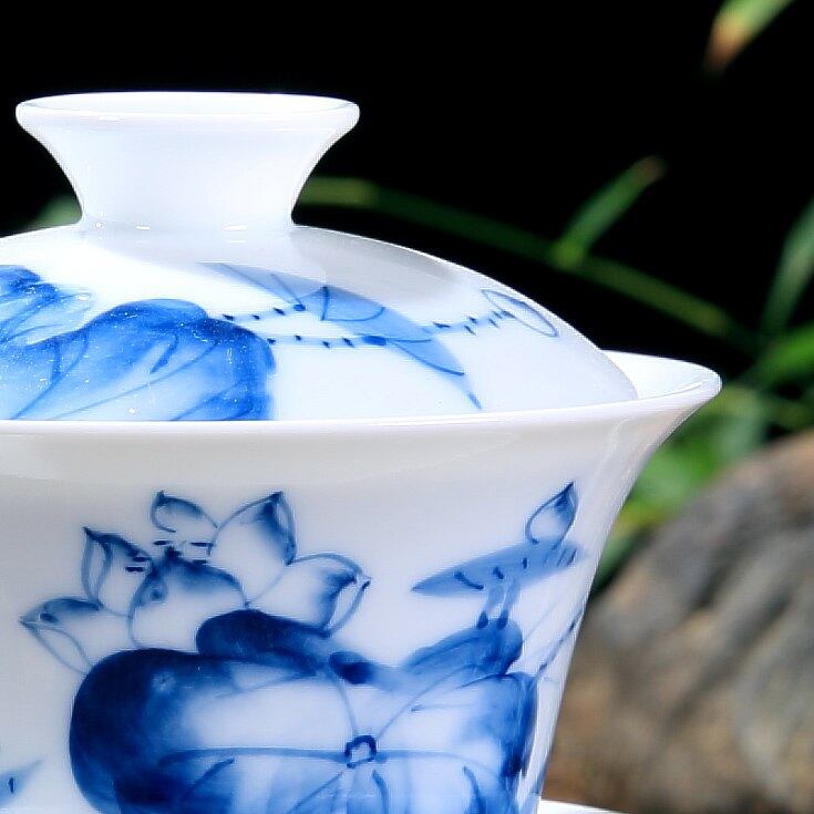 170ミリリットル景徳鎮青花磁器カバーボウル茶手描き蓮茶ボウルカップ磁器白磁sancaiボウル