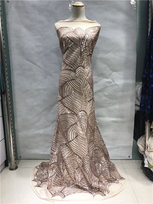 ゴールドスパンコール高品質アフリカフランス語ネットレース生地刺繍オーガンジーレーストリムナイジェリアウェディング用大きな機会ドレス