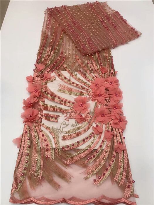 5 ヤード/ロット 3D 花ビーズチュールレース生地新デザインナイジェリアチュールレース Fabricc z922