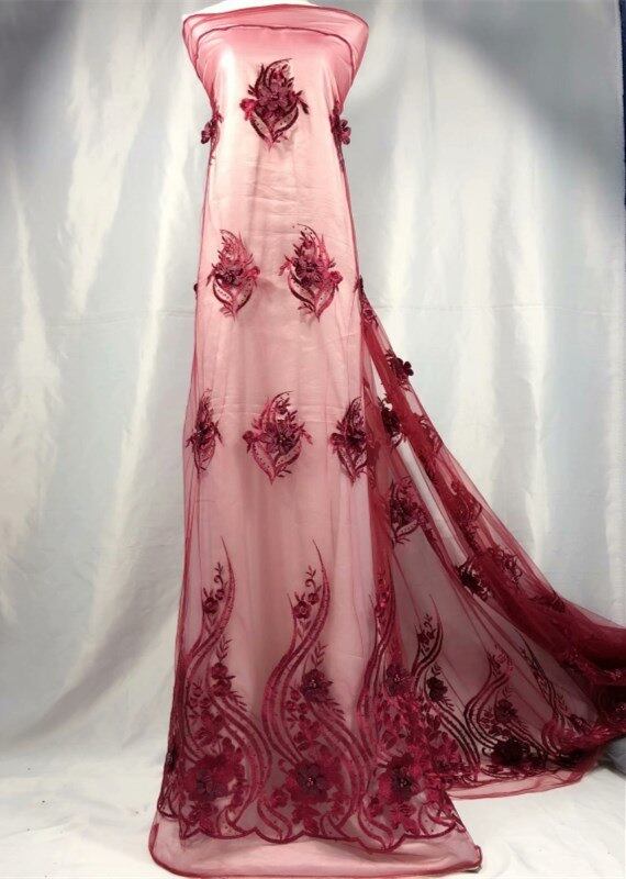 レッドナイジェリアフレンチレース生地 2018 アフリカチュールレース生地高品質ビーズアフリカのレースの結婚式のファブリックドレス ju-7-1