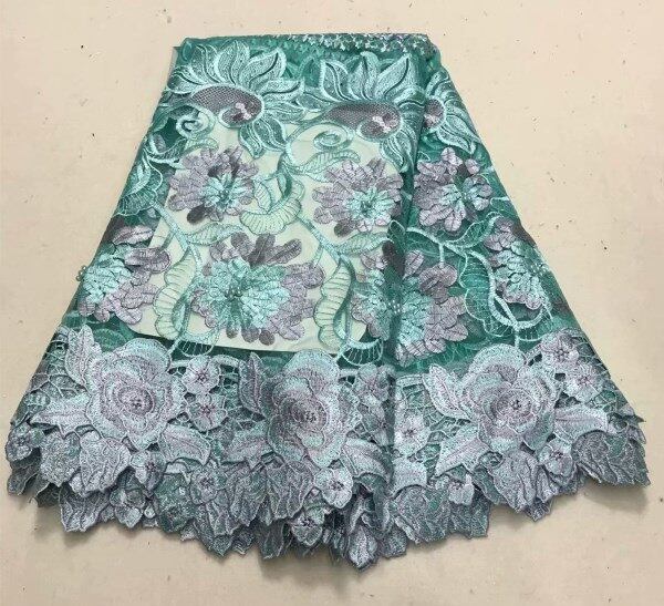 最新 2019 シンプルなデザインフレンチスタイルのチュールレースビーズスカイブルー刺繍フレンチレースの生地ウェディング w8-20