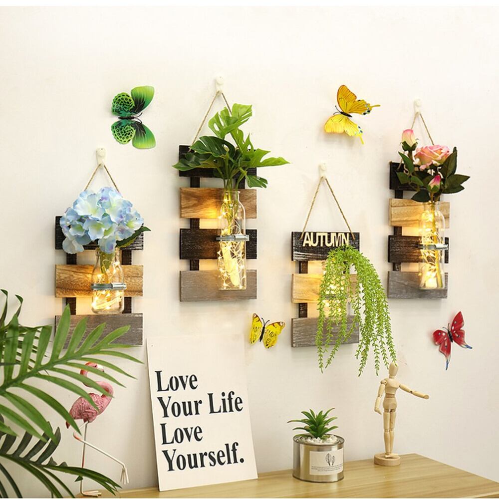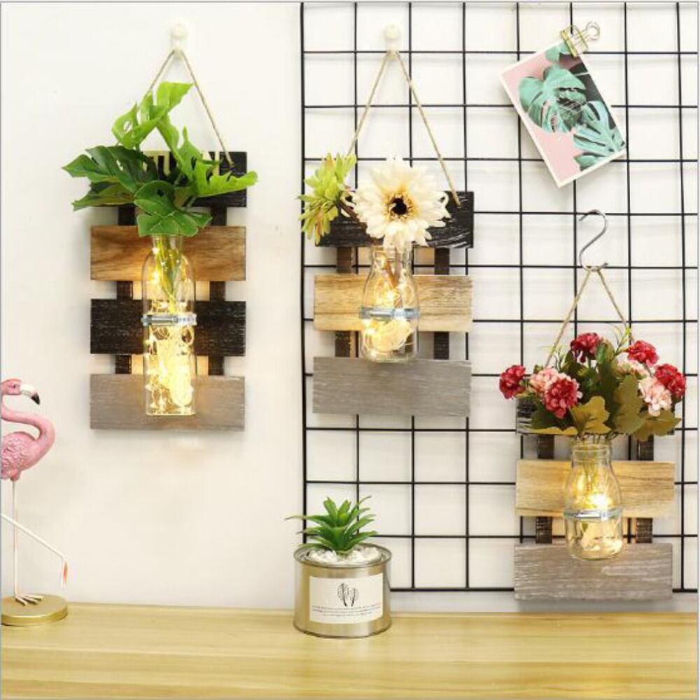 木製デザイン水耕植物花瓶搭載植栽植木鉢ガラスボトル牧歌的な壁掛け装飾