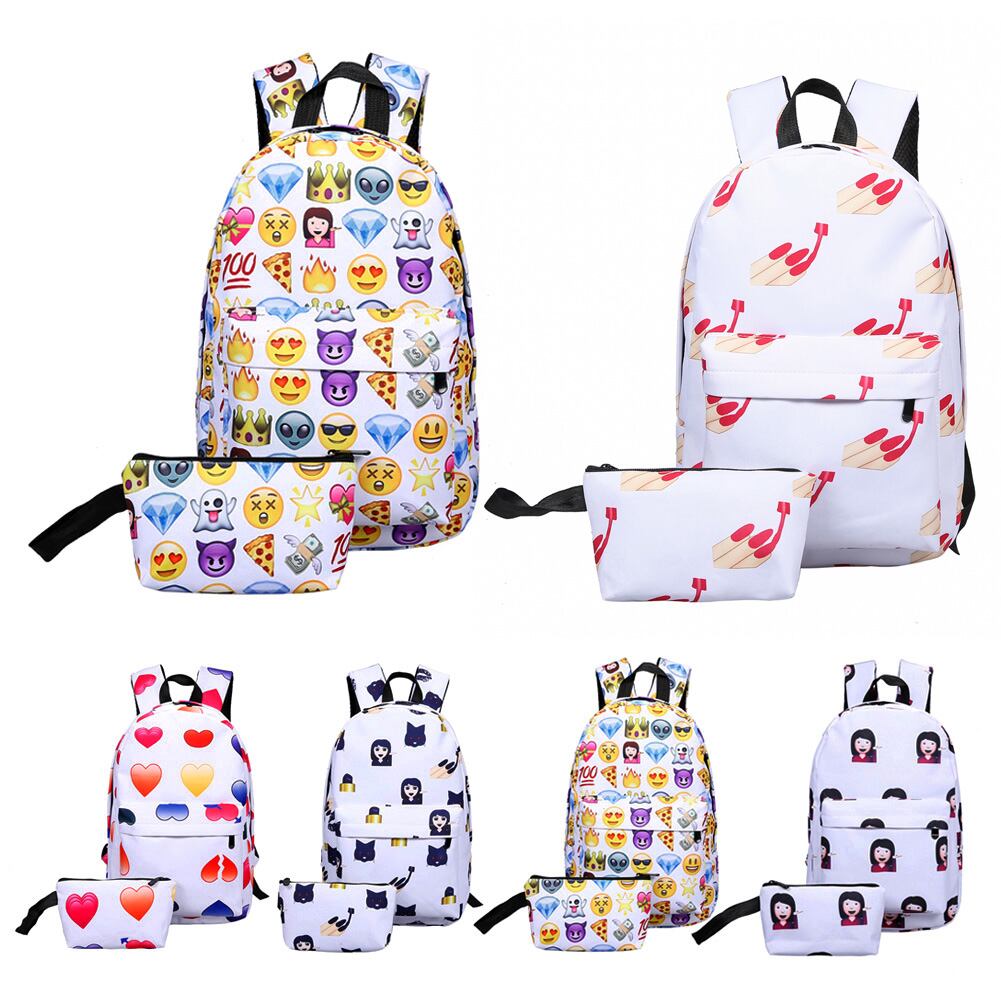 新しい2ピース屋外ファッション· 3d印刷ナイロンバックパック笑顔かわいい笑顔印刷バックパック旅行スクールスポーツバッグ5パターン