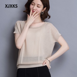 Xjxksニット緩い韓国スタイル半袖アイスシルクtシャツ2018新しい女性の夏薄いバットスリーブtシャツファム